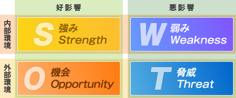 SWOT分析では、次の4つの要素により会社の状況を分析把握致します。
