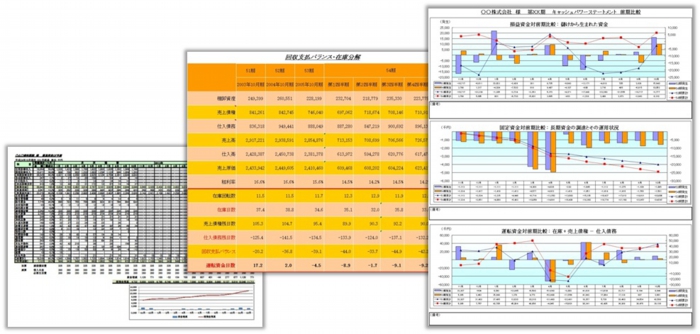 財務分析ツール(資金繰り予測、回収支払バランス分析、キャッシュ属性分解)
